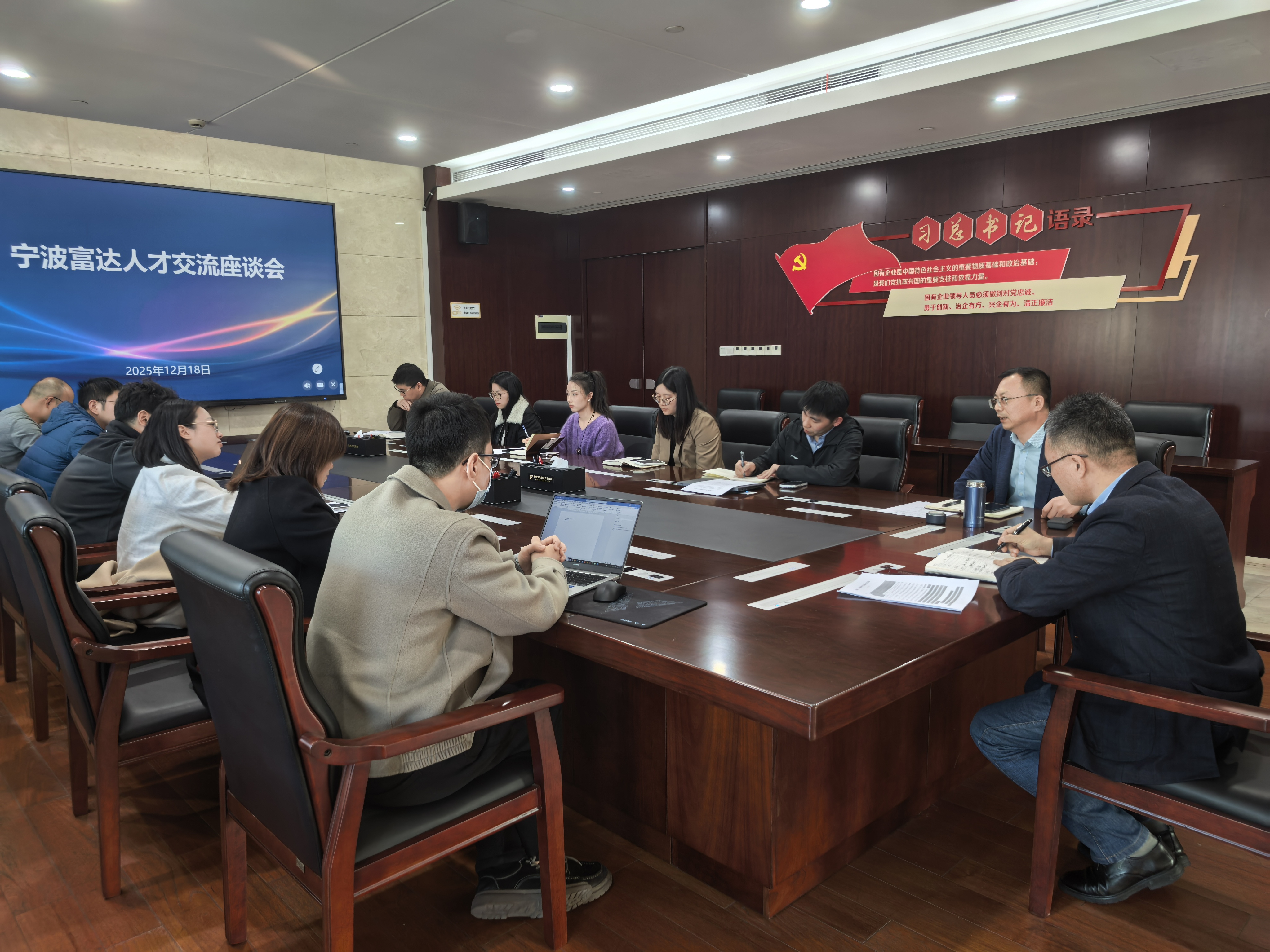 2025年12月18日,宁波富达召开人才交流座谈会。会议由公司党委委员、副总裁陈光主持,聚焦人才梯队建设、培养机制优化、人才“引育留用”及员工关怀等重点议题,鼓励青年骨干、高学历员工等代表积极建言。与会人员围绕差异化考核激励、跨部门协同、系统性培养体系及导师带教机制等方面展开深入交流,并就多项人才工作机制优化形成初步共识。
